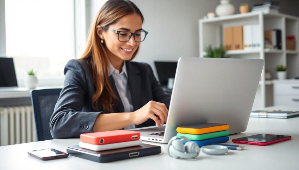 Mobile chargers offer rapid charging and portability. Laptop sleeves provide protection and a sleek design for professionals. Wireless headphones often include noise-canceling technology for an immersive audio experience. Desk organizers come with multiple compartments to keep workspace tidy. Cables and adapters ensure compatibility across various devices, creating an efficient setup. Each accessory targets specific issues, enhancing performance and aesthetic appeal.